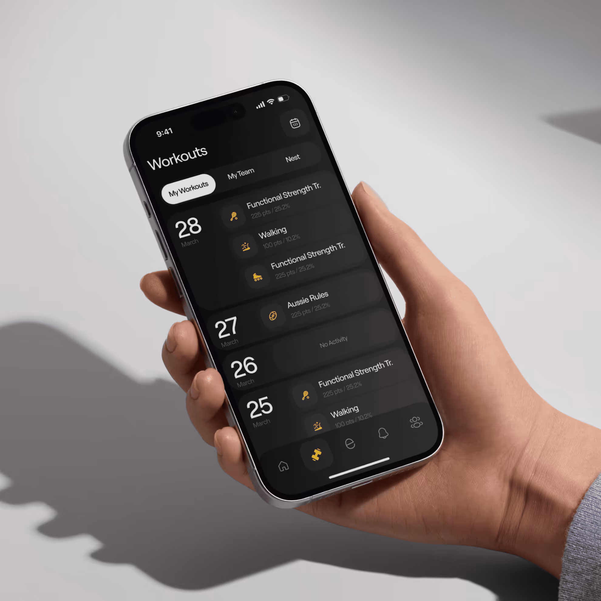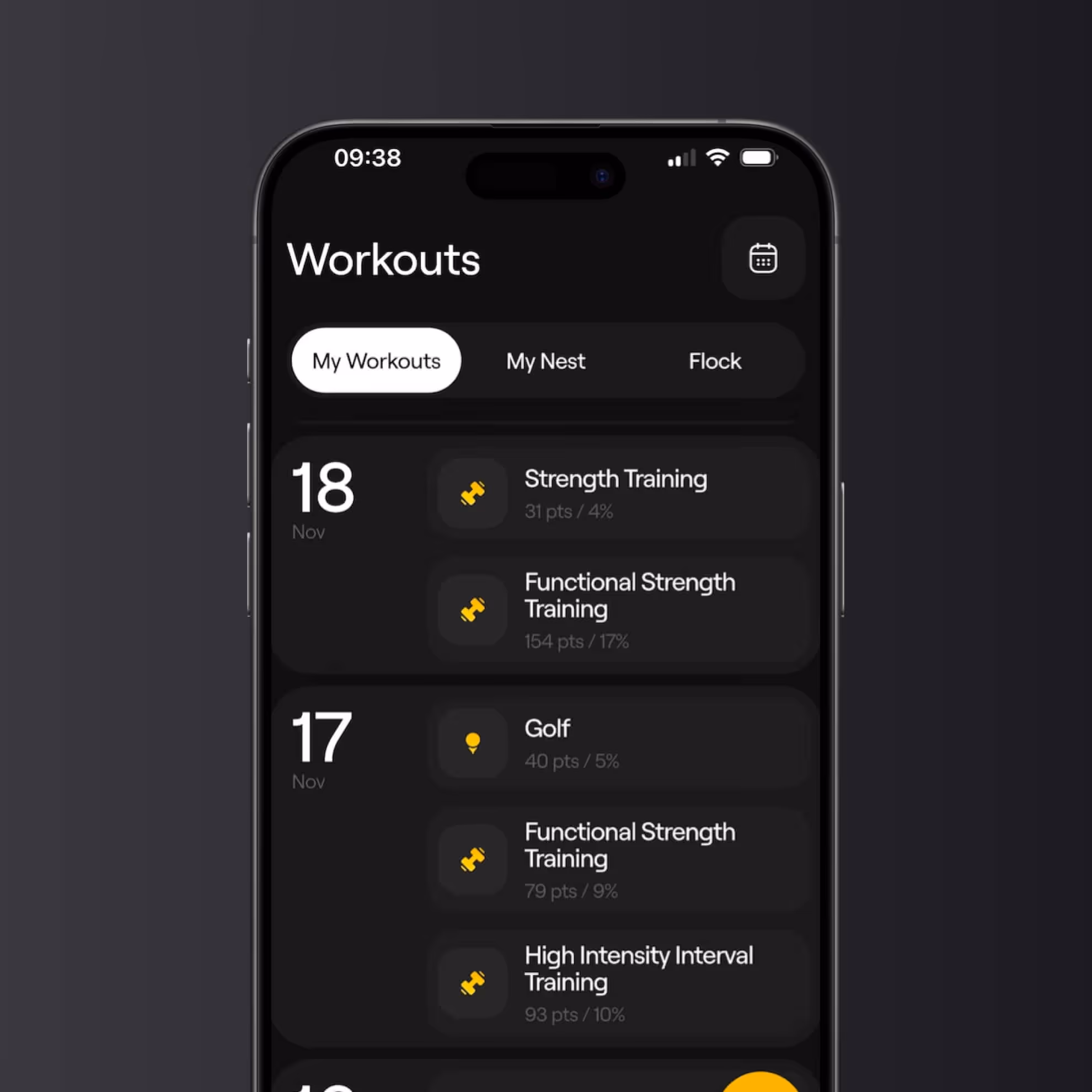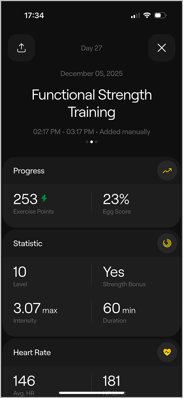 Every workout earns Exercise Points based on duration and intensity. This is then translated to your Level score, which is calculated relative to your current NestEgg level. The higher your level, the higher your weekly exercise points target — that’s how beginners and beasts compete on equal terms in NestEgg.