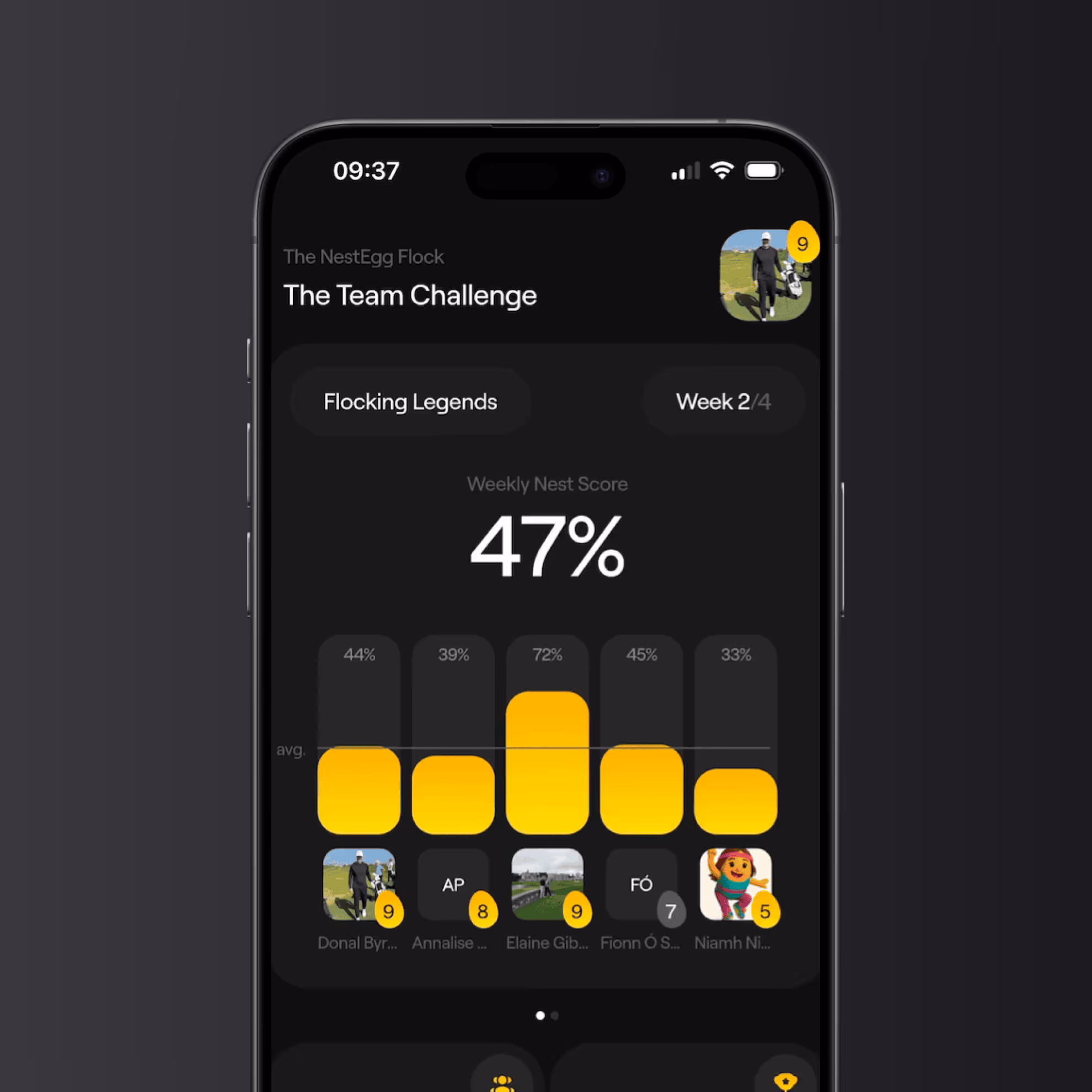 Your Nest battles the other Nests in a 4-week team leaderboard. Hit your weekly targets, support your crew, and chase that top spot. Friendly chaos and competition encouraged.