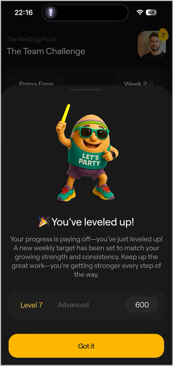 Hit your target to keep your Nest on track. Exceed it and you get promoted. Climb the ranks, unlock new Levels, and earn your Nest serious bragging rights. Consistency gets rewarded here.