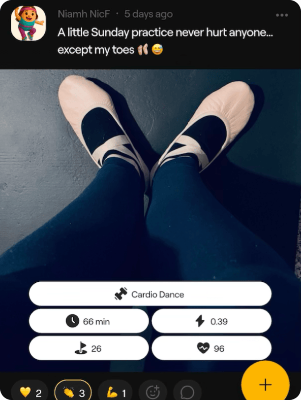 Share proof-shots, celebrate wins, drop emojis, and enjoy the craic in the Feed. It’s motivation, laughs, and accountability — all from your Nest and the wider Flock. Movement feels easier when everyone’s in it.