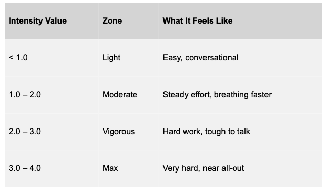 Intensity is derived from your heart-rate data during the workout, using information your wearable already captures:
