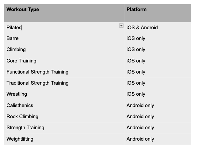 The platform column reflects how different wearable ecosystems classify workouts. NestEgg uses the workout type provided by your connected device to determine eligibility for the strength bonus.